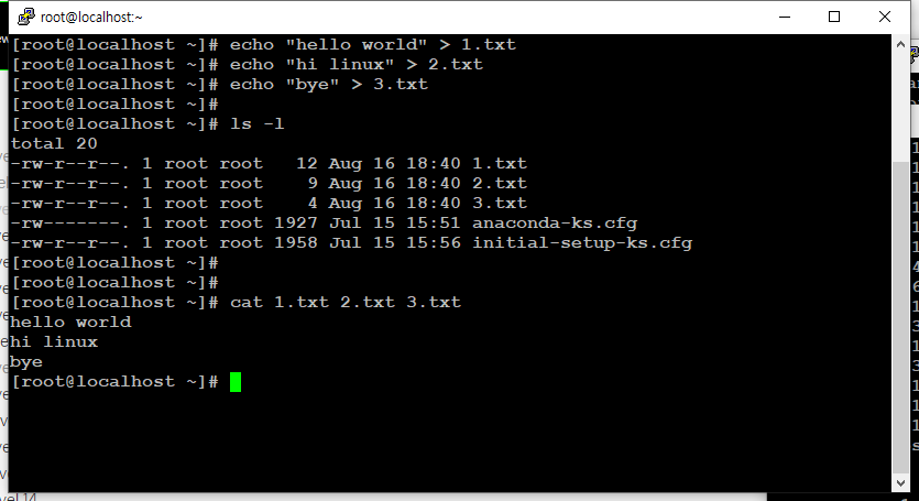 아래와 같이 cat [파일명1] [파일명2] [파일명N] 방식으로 사용가능합니다.
