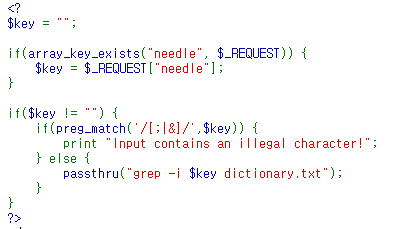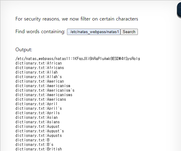 ; 등을 사용하지 않고 /etc/natas_webpass/natas11 과 dictionary.txt 파일 모두에서