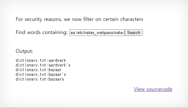 grep -i aa /etc/natas_webpass/natas11 dictionary.txt 으로 완성됩니다.