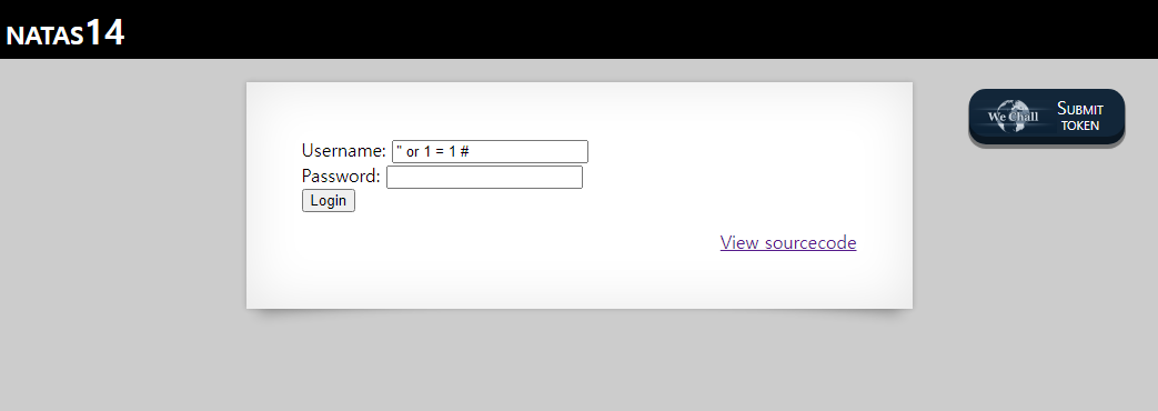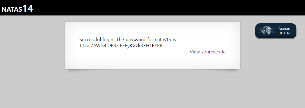 natas14 에 구현되어 있는 쿼리문을 아래와 같은 방식으로 바꾸면 어떻게 될까요?
