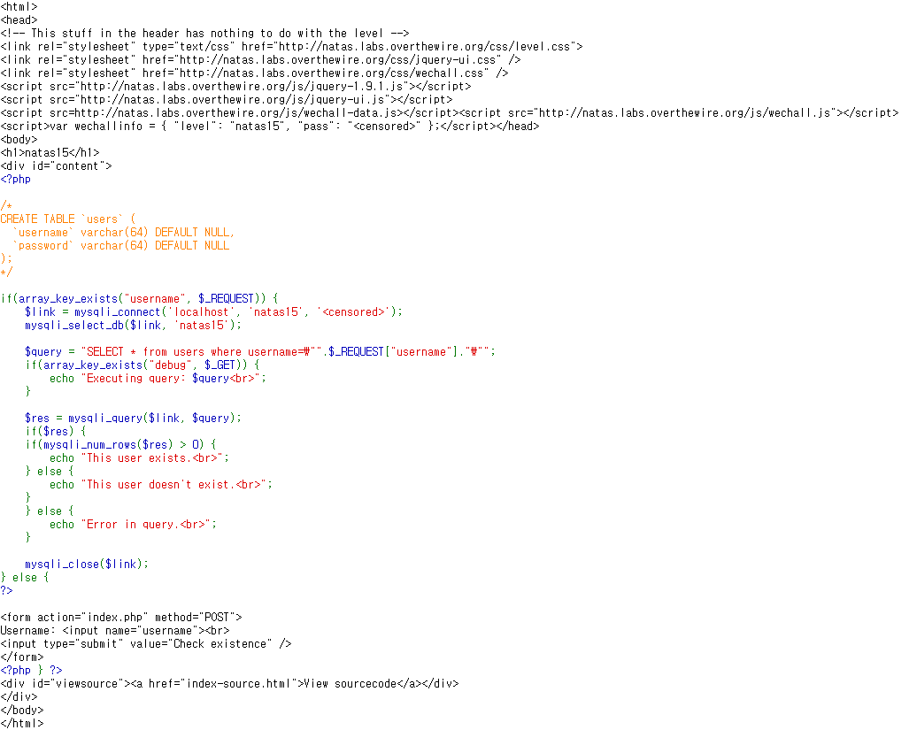 natas14 도 다시 살펴보면 동일한 구조를 가지고 있고